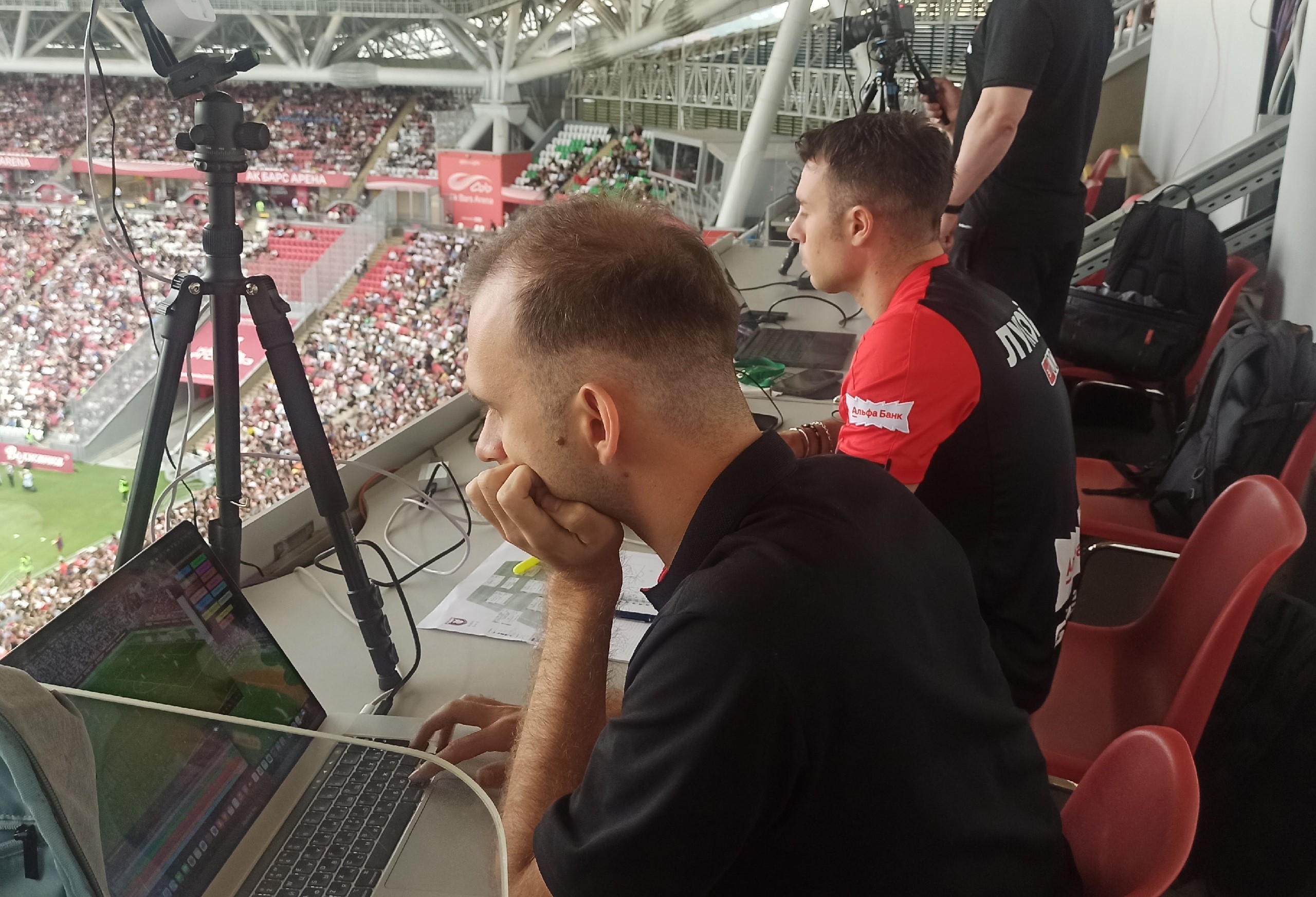 На трибуне для СМИ сидела группа аналитиков «Спартака». Один из них (итальянец) очень бурно реагировал на каждый удачный подкат Литвинова против Даку. Орал что-то звонкое и бил рукой по столу.